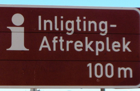 Dit verkeersbord in Zuid-Afrika duidt geen plaats voor obscure activiteiten aan, maar gewoon een parking langs de snelweg.