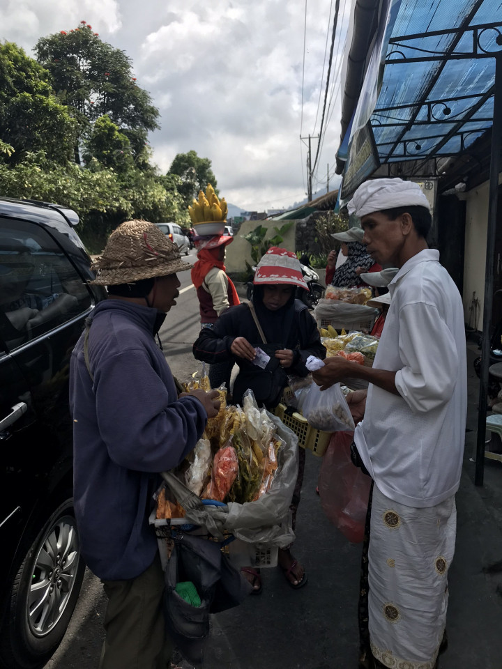 .The next morning Ketut was waiting for us again to show us central Bali. On the way to Ubud we noticed that there was a lot of activity on the street. Apparently November 1st is also a public holiday here and the inhabitants were busy decorating the street. Everywhere you saw pop up shops that sold decorative material. It is apparently quite a feat to decorate your street as nicely as possible. Neighbors walk away with beautiful poles that they place in front of each house. Everyone helps each other. The children also help enthusiastically everywhere. We decorate at home, each for ourselves, our Christmas tree. It would be much nicer if we would work with our neighbors to decorate our streets together.